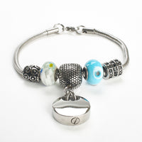 Stainless steel cremation bracelet with round ashes charm. Comes in a jewellery pouch and supplied with tools and instructions to open and distribute the ashes within.